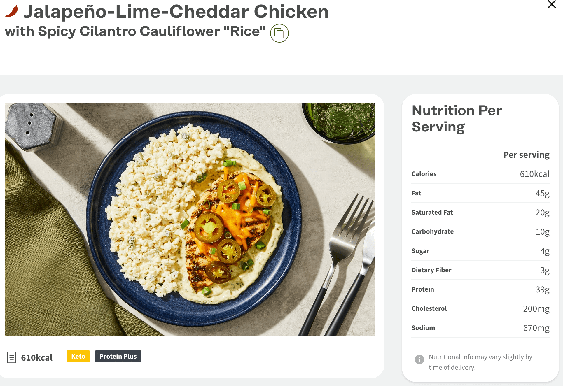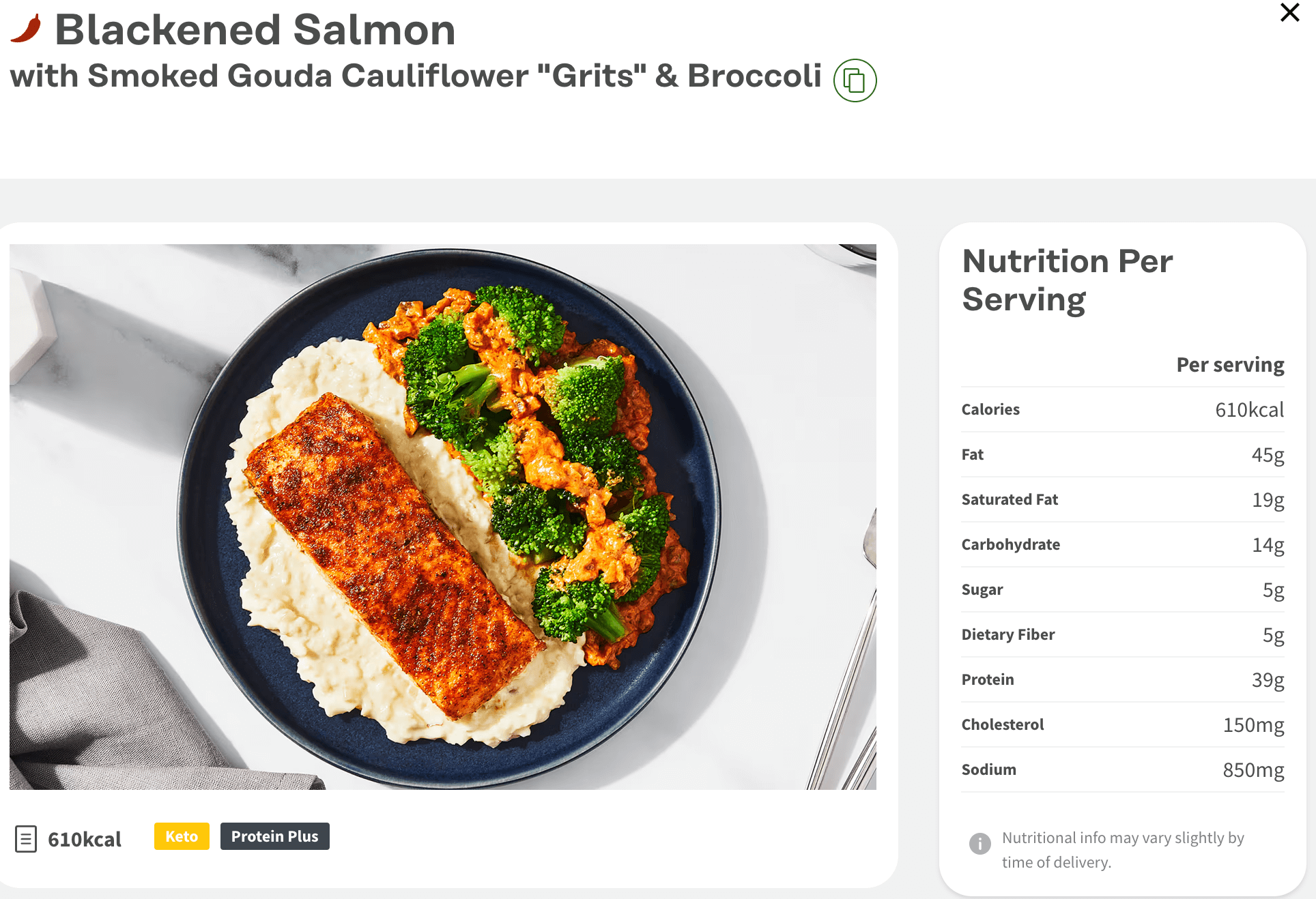 Blackened Salmon from Factor with Nutrition facts