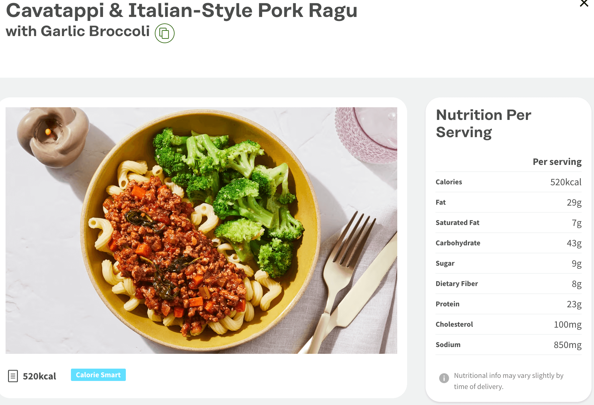 Cavatappi Pork Ragu from Factor with nutrition information
